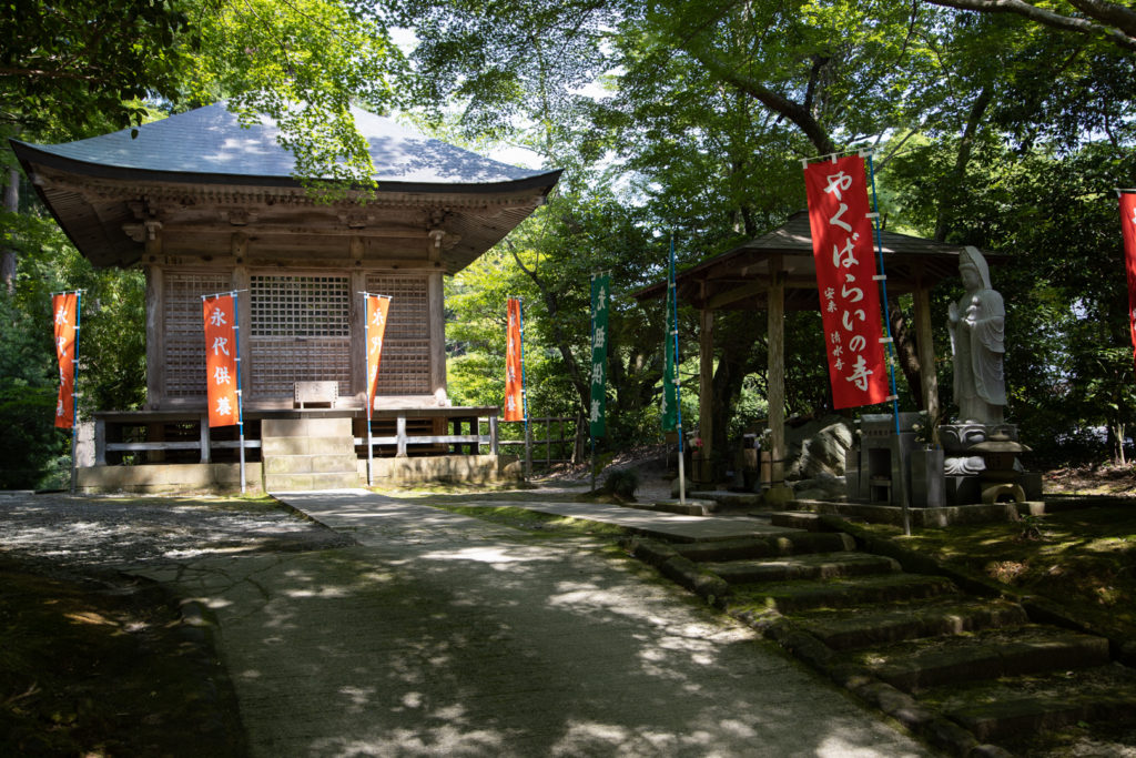 安来 清水寺 清水寺。といえば京都の音羽山・清水寺をまず思い浮かべると思います。しかし全国には約90箇所の「清水寺」があり、ここ島根県安来市にある瑞光山・清水寺も開山1400年の歴史があり、いくつもの重要文化財と三重塔を所有する厄払いの寺として地域の信仰を集めています。 まず大門へ続く階段を登ります。 杉林を抜けていきます。 お出迎え観音像。 大門の先、参道左手にある不動明王。 開山堂水中観音境内の旅館では精進料理を食べることもできます。 本堂周辺 清水寺根本堂。国の重要文化財に指定されています。 護摩堂(奥)香籠堂(手前) 三重塔。一般公開しており登ることができます。(有料) 清水稲荷社。撮影スポットとしても人気があります。 2020-08-10 投稿先 blog, トコロ ← 過去の投稿へ 次の投稿へ → コメントを残す コメントをキャンセルメールアドレスが公開されることはありません。 ※ が付いている欄は必須項目ですコメント ※ 名前 ※ メール ※ サイト 次回のコメントで使用するためブラウザーに自分の名前、メールアドレス、サイトを保存する。 上に表示された文字を入力してください。 Δ