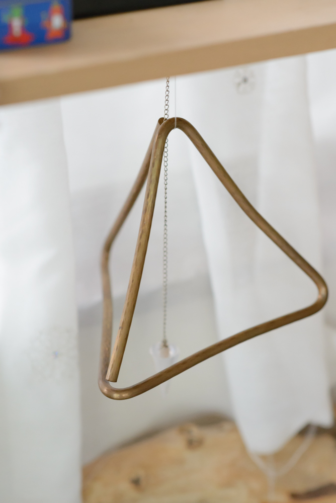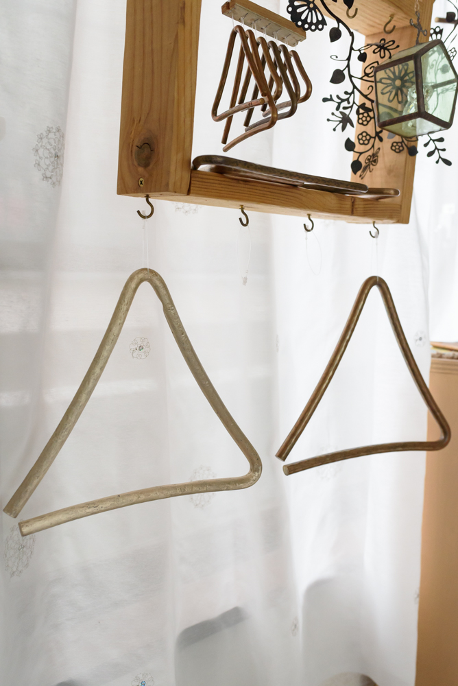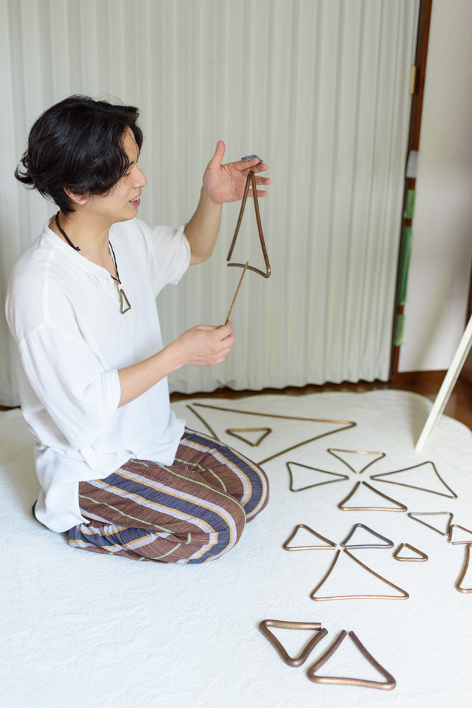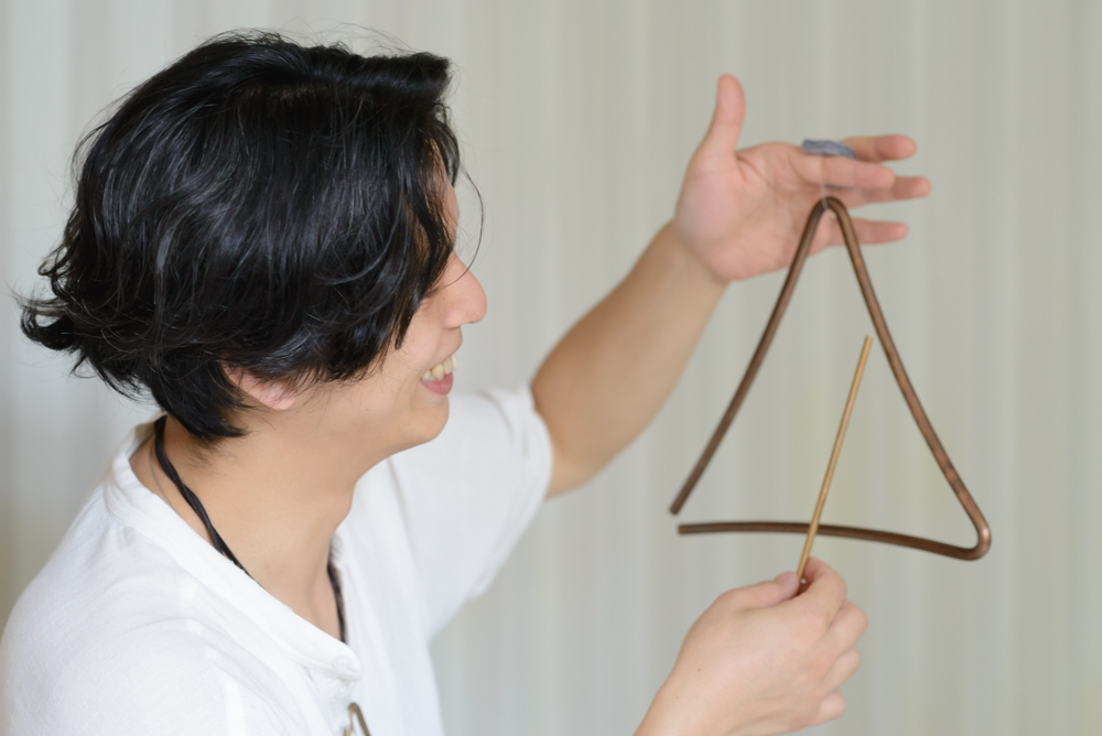 製作のきっかけは5年前。あるトライアングルの銘器に出会った。鳴らしてみたとき、「これ作れる。作ってみよう」と直感。思い付くと即行動してしまう彼は、全くの独学で製作をはじめる。