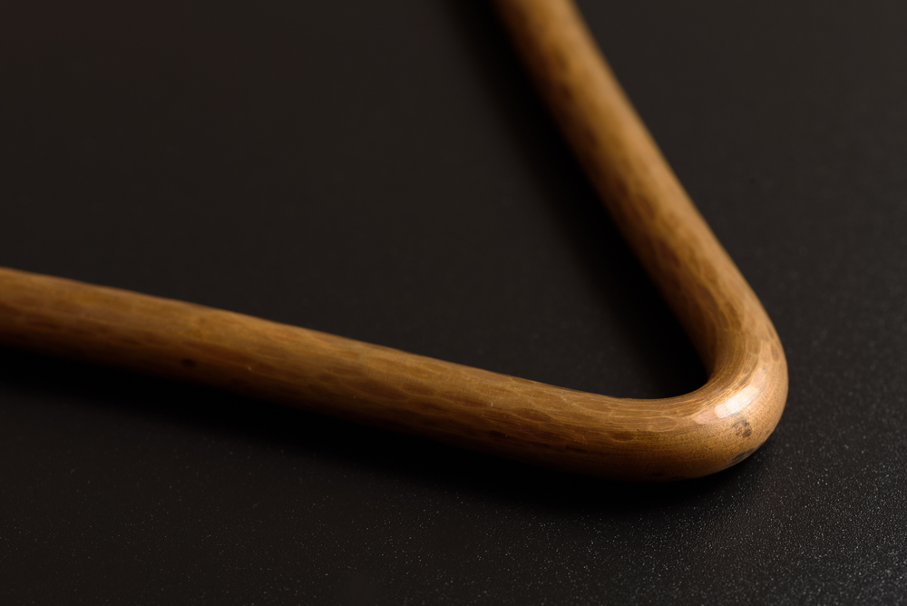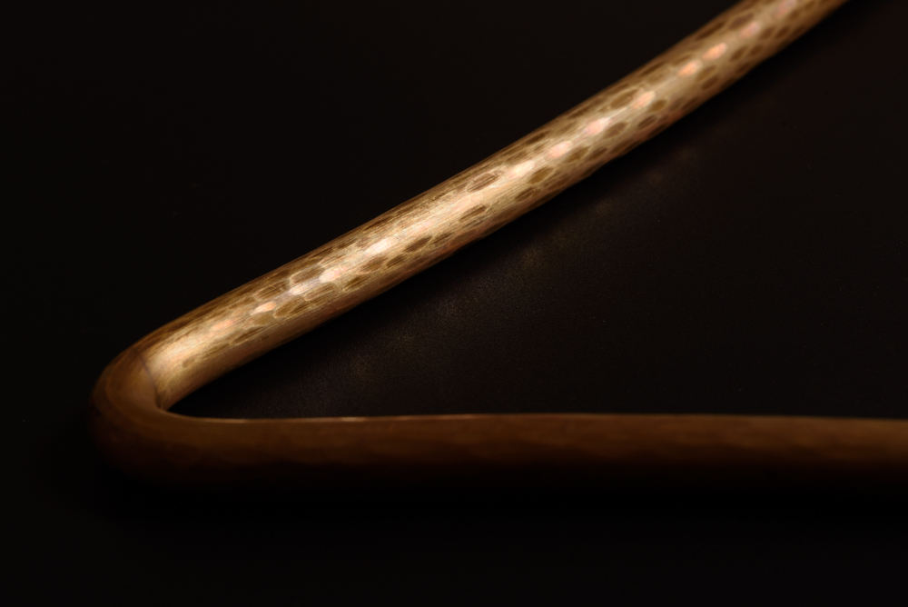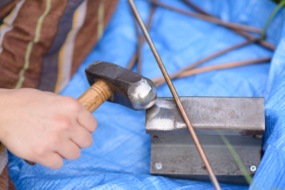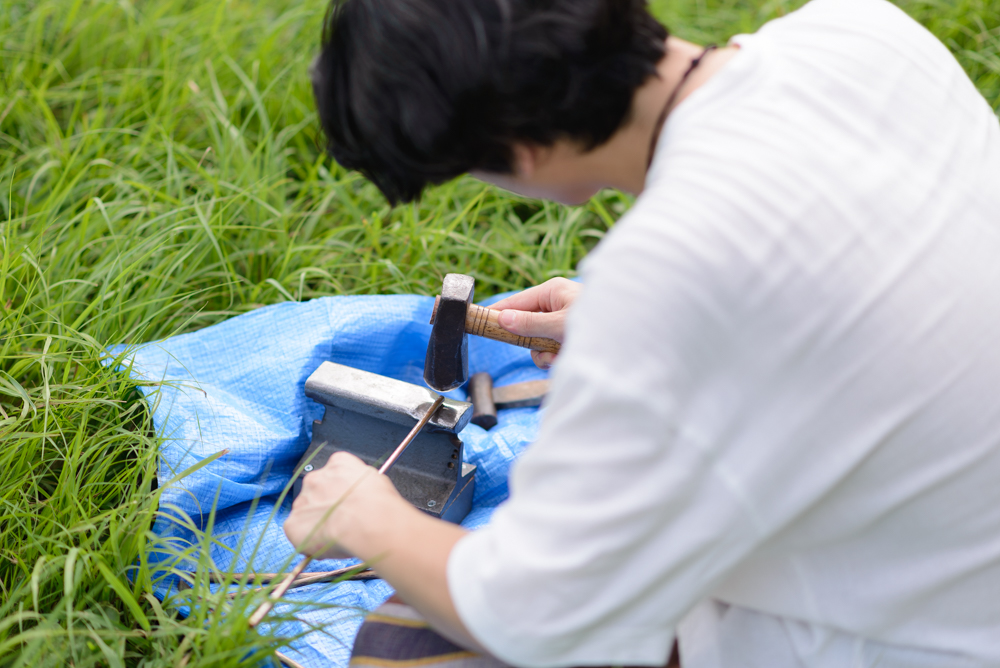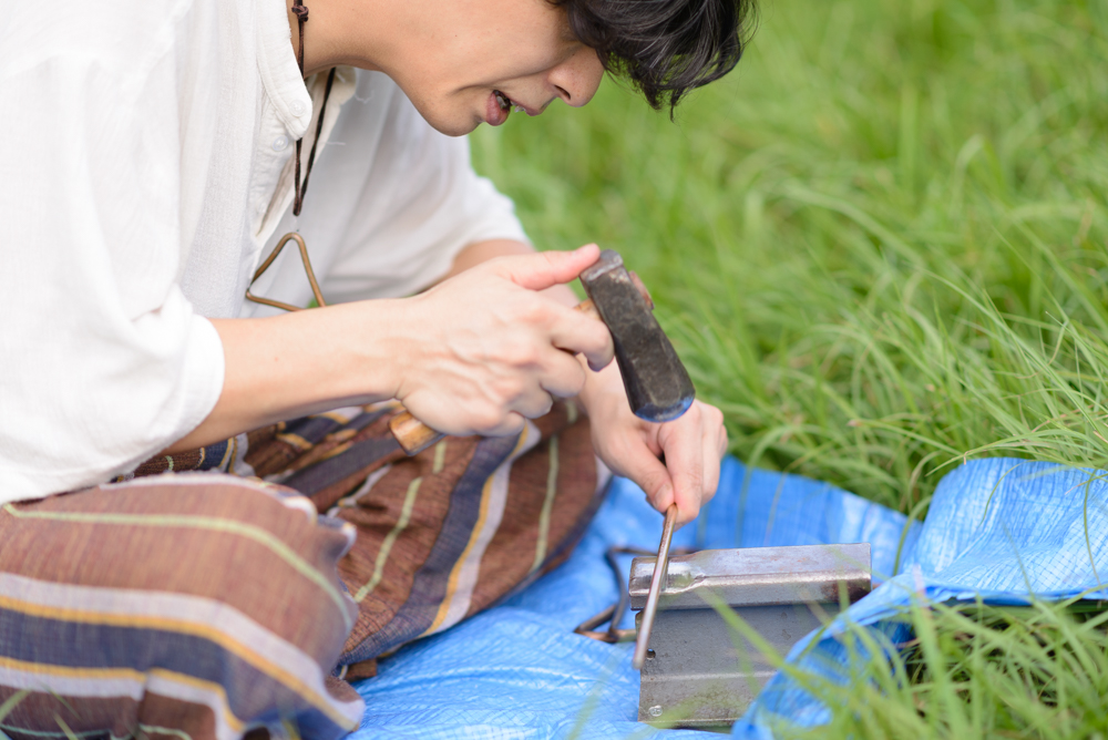 背中を丸め、トライアングル職人・北山靖議は金槌を打ち付ける。