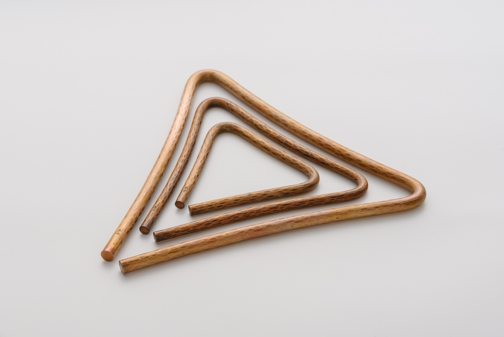 トライアングルとなる金属棒の表面に凹凸をつけているのだ。これが独特な響きを生むという。