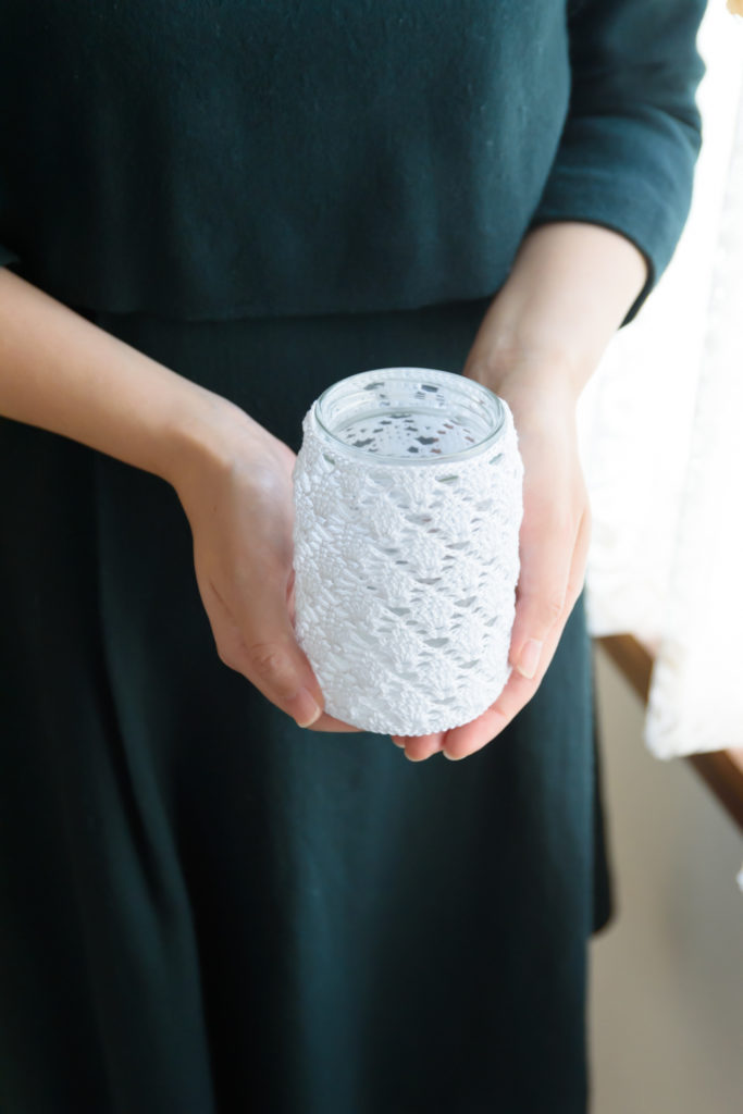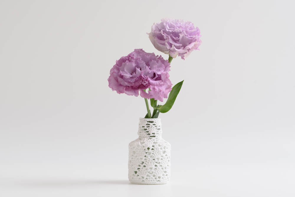 「レース編みって、とにかく平面作品が多いんです。テーブルクロスとかコースターとか。どれも私にはあまり使いどころがイメージできなくて……だから、レース編みの手法を使って別のものを作れないかなとやるうちに辿り着いたのが、今の作品なんです」