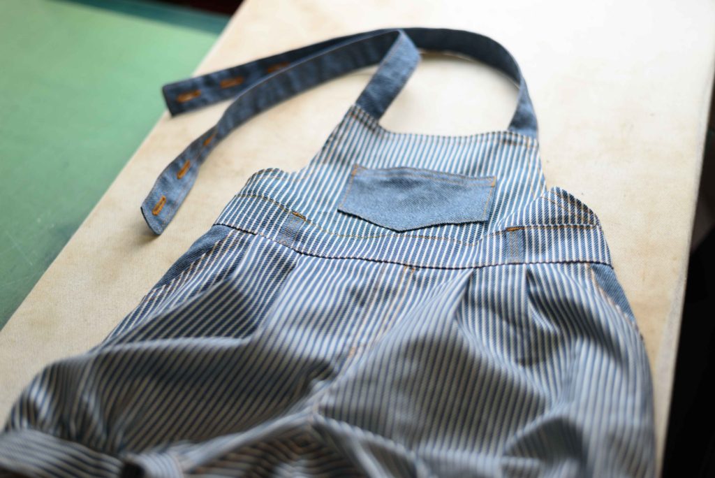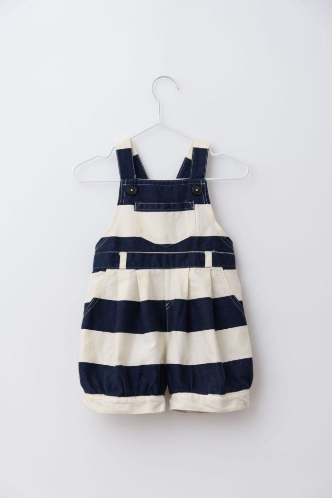 Areu人気商品の「ぷっくりシルエットのサロペット(つなぎ)」。幼い頃にしか着せられない形の服。