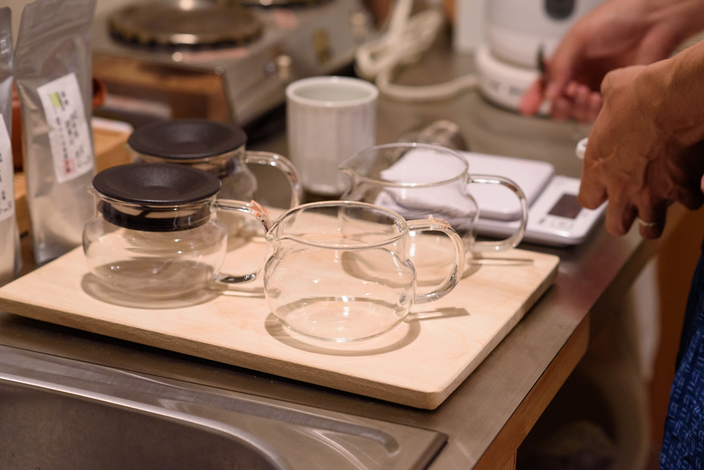 一杯ずつ大切に淹れたお茶を飲み比べる。