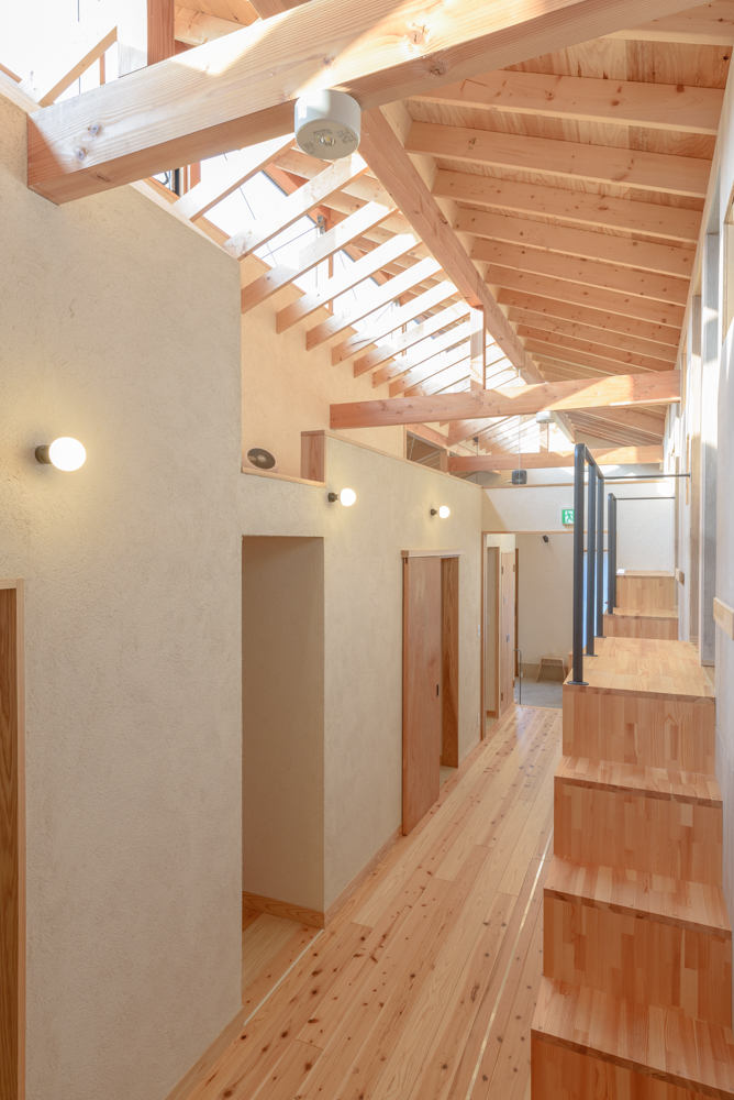 トマリギのドミトリーは優しく包み込んでくれるような木の空間。